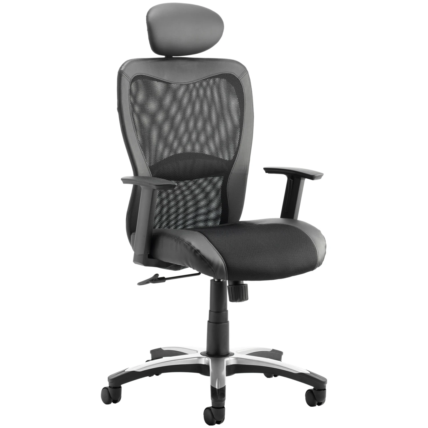 - Black mesh backrest with bonded leather surround
