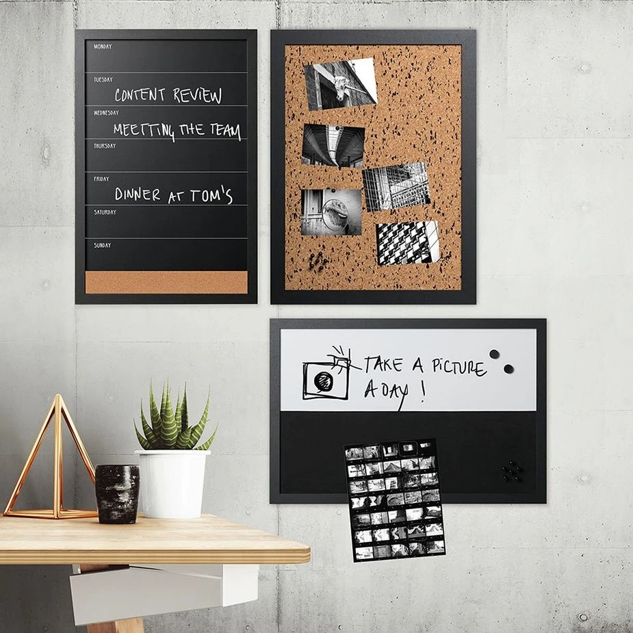 - 1 cork, 1 combination, and 1 chalk board with cork panel.