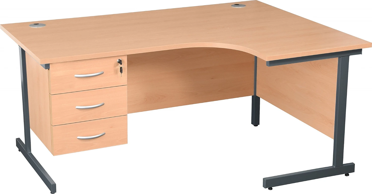 - Classic cantilever design ergonomic office desks with a fixed storage pedestal.