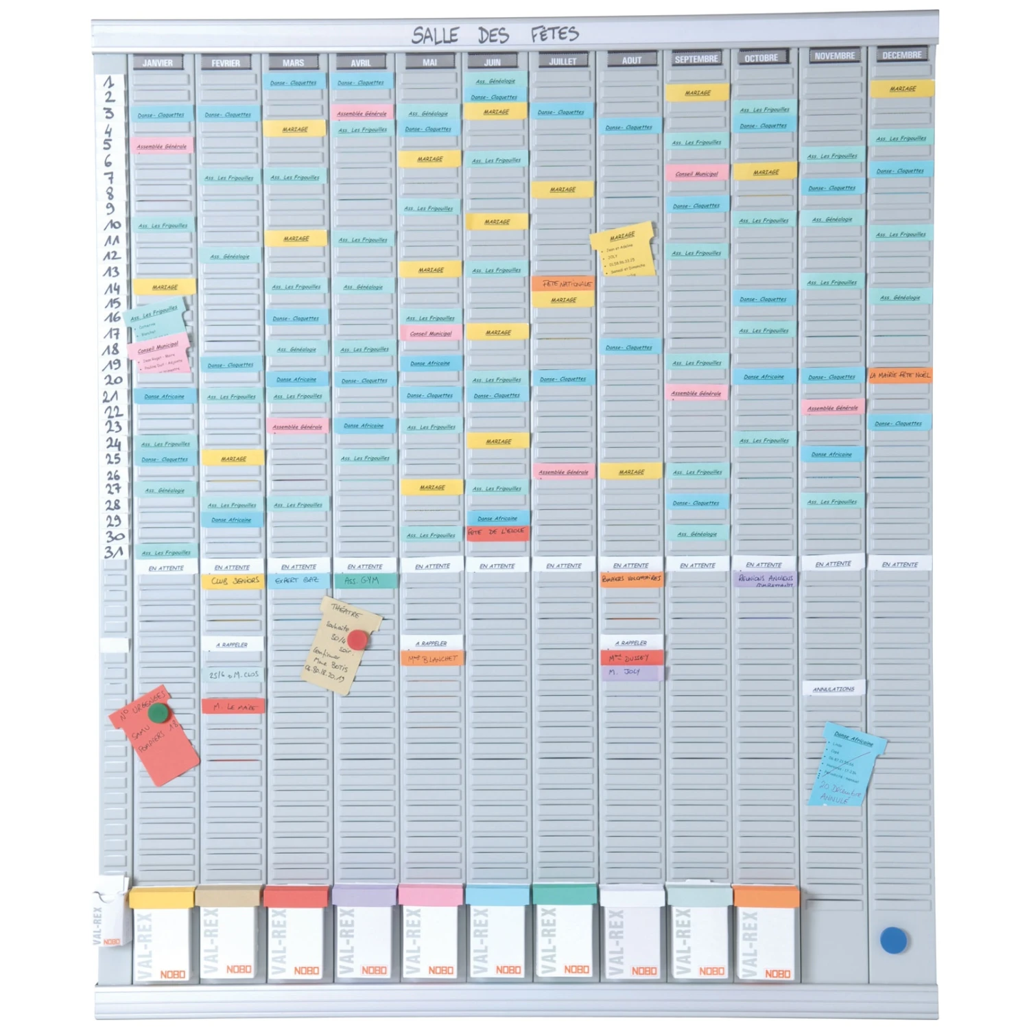 - Each kit includes 12×54 slot panels, index panel, wall supports, day/month labels & 10 boxes Size 2 T cards (ten colours)