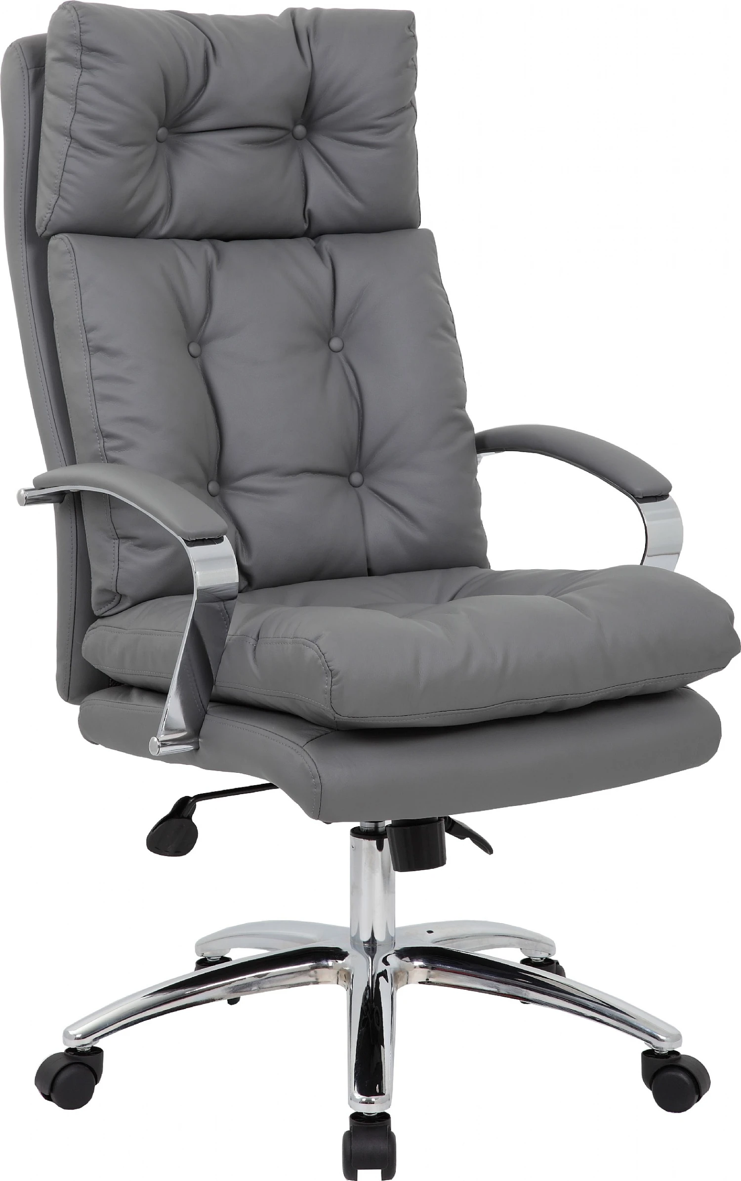- High back faux leather manager chair with integral headrest area to help support the head and neck.